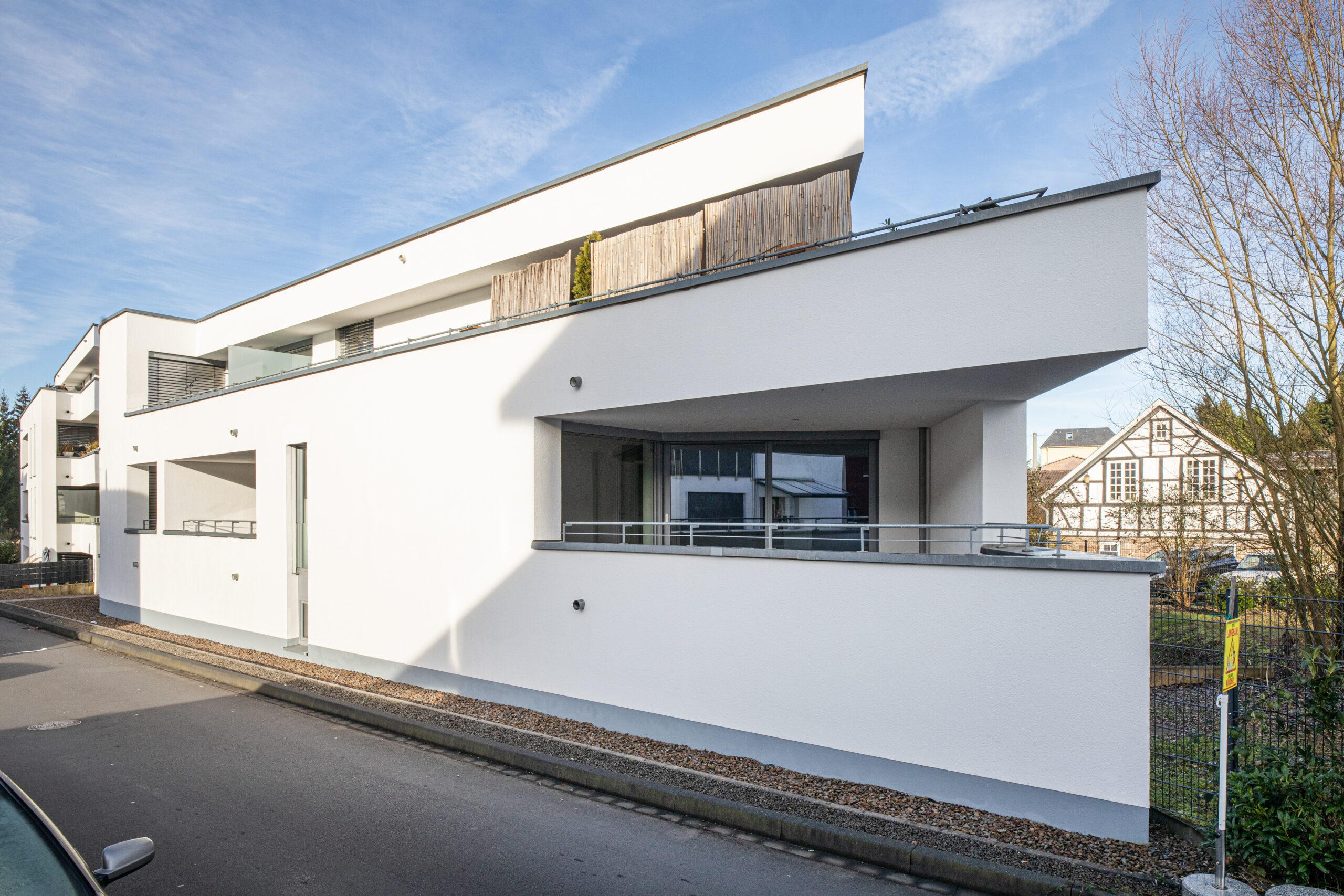 Das Wohnhaus an der Olper Straße in Overath-Untereschbach wurde 2015 fertiggestellt und bildet das architektonische Paradeobjekt von B/B Wohnbau.